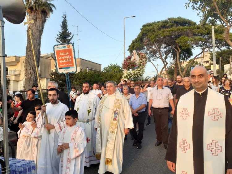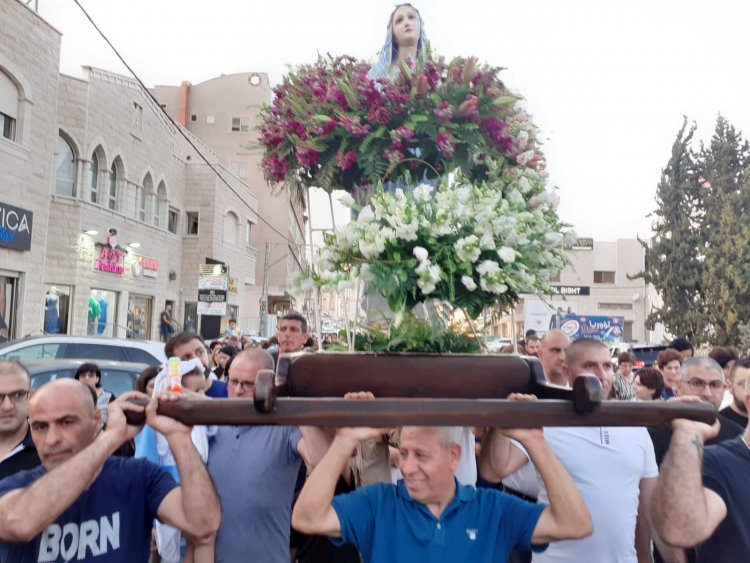 القيامة - احتفلت كنيسة القديس للاتين في شفاعمرو، مساء اليوم الثلاثاء 31 أيار، باختتام شهر مريم العذراء (الشهر المريمي)، بمسيرة اخترقت الشوارع المحيطة بالكنيسة بحضور المئات من الأهالي، والمئات الآخرين الذين اصطفوا على جوانب الطرق وشرفات البيوت.