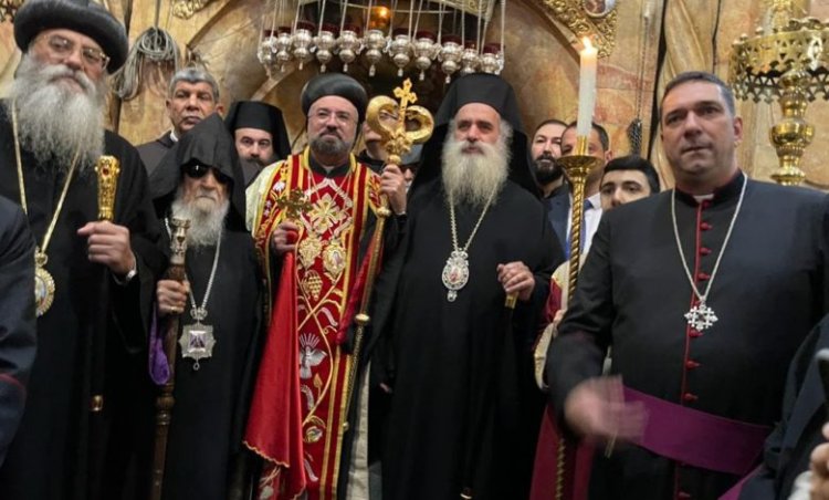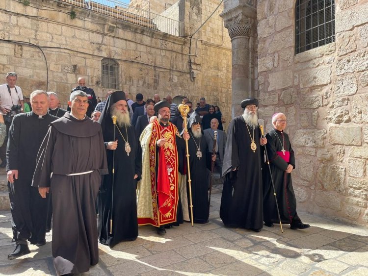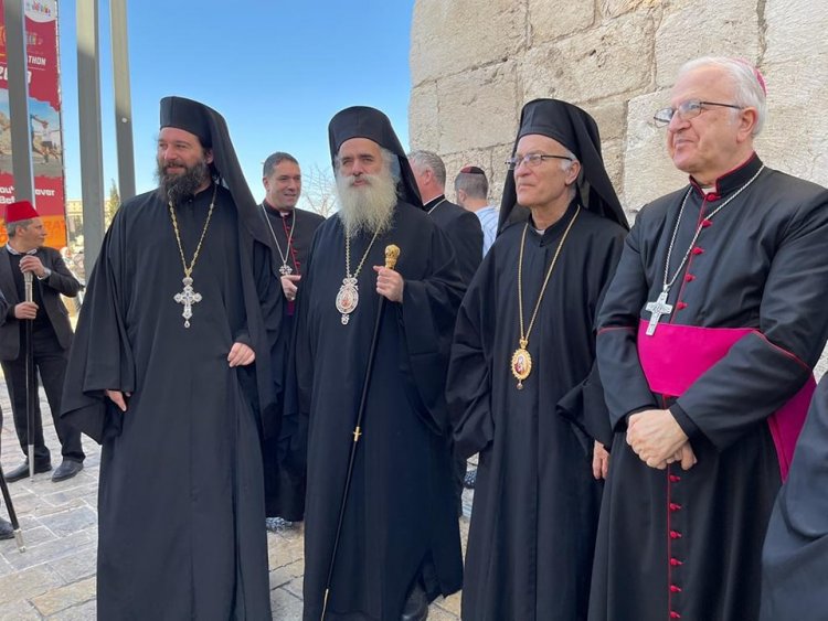 المطران عطا الله حنا ممثل بطريركية القدس للروم الأرثوذكس، الآباء الفرنسيسكان نائب الحراسة الأب ابراهيم فلتس، المطران سيفان غريبيان ممثل بطريركية الارمن الارثوذكس، المطران وليم شوملي ممثل بطريركية اللاتين، مطران كنيسة الروم الملكيين الكاثوليك رئيس الأساقفة ياسر العياش، مطرانية الكنيسة الأنغليكانية المطران حسام نعوم ولفيف من مطارنة الكنيسة الانجيلية اللوثرية، ورئيس الاساقفة للأقباط الارثوذكس الأنبا البطريرك رئيس الاساقفة أنطونيوس بطريرك الاقباط الارثوذكس، ومطران كنيسة الاحباش الارثوذكس أباأمباكوب ولفيف من كهنة الاحباش الارثوذكس، وحشد كبير من أبناء مختلف الرعايا المسيحية في القدس وبيت لحم.