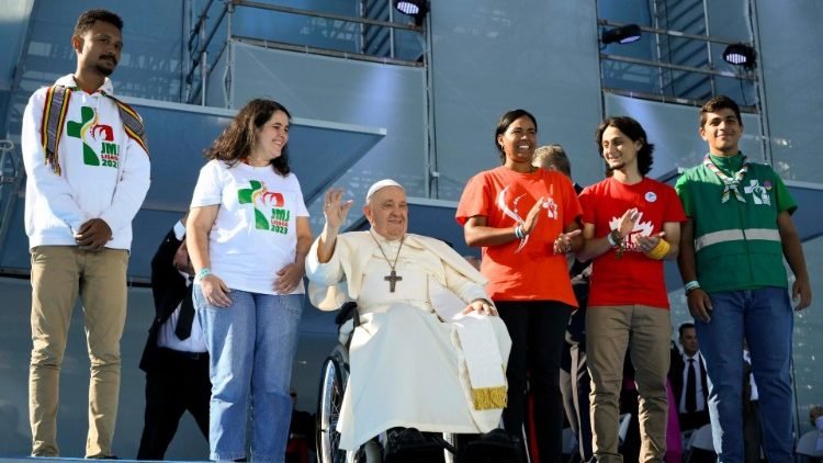 وختم البابا فرنسيس عظته بالقول أيها الشباب الأعزاء، أريد أن أنظر في عيون كل واحد منكم وأقول لكم: لا تخافوا! لا بل سأقول لكم شيئًا أجمل: إن يسوع نفسه ينظر إليكم في هذه اللحظة، هو يعرفكم، يعرف قلب كل واحد منكم، يعرف حياة كل واحد منكم، يعرف الأفراح، يعرف الأحزان والنجاحات والفشل، يعرف قلوبكم وهو يقول لكم اليوم، هنا في لشبونة، في هذا اليوم العالمي للشباب: "لا تخافوا". تشجّعوا ولا تخافوا.