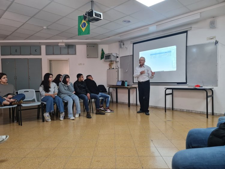 الكاتب زياد شليوط يحاضر حول الأدب الساخر أمام طلاب الإعدادية في مجدل شمس