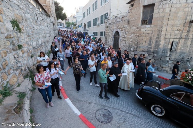القيامة- احتفلت كنيسة سيّدة البشارة في مدينة بيت جالا، بالاشتراك مع المعهد الإكليريكي التابع للبطريركيّة اللاتينيّة، باختتام الشهر المريميّ.