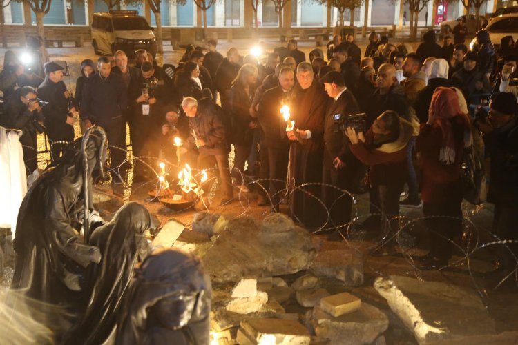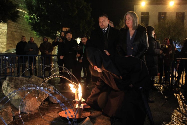 القيامة - أطلقت بلدية بيت لحم وفعاليات ومؤسسات المدينة، وقفة "الميلاد تحت الأنقاض" التي تضمنت افتتاح مغارة الميلاد تحت القصف، اليوم السبت 23/12/2023. وتم افتتاح المغارة بصلاة من اجل السلام في فلسطين، حيث تم اضاءة شموع من قبل الحضور بمصاحبة أغنية سلام لغزة تلاها تدشين المغارة.