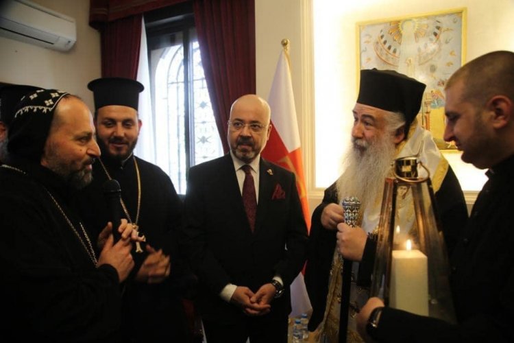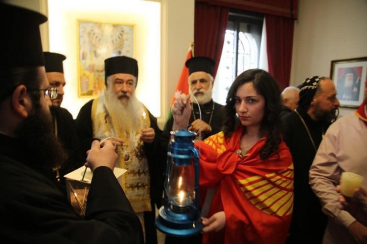 فقد توجَّهَ الوفدُ العراقيّ الضّيفُ وعلى رأسِهِ الأب دانييال بِحنام وحضورِ سَعادةِ السَّفير العراقيّ في الأردنّ، السّيّد حيدر العذاري والأب بنيامين شمعون، راعي كنيسةِ مار إفرام للسّريان الارثوذكس في عمّان، مع وجهاءٍ من كنيسةِ السّريانِ في الأردنّ إلى دارِ مطرانيّة الرّومِ الأرثوذكس، لاستلام النّورِ المُقدّس من يدِ سيادةِ المُطران خريستوفوروس، مطران الأردنّ الذي تمنّى كلَ الخيرِ والسّلامِ لجميعِ الشّعبِ العراقيّ وثمّنَ للحُكومةِ العراقيَّةِ هذهِ المُبادرة الكبيرة.