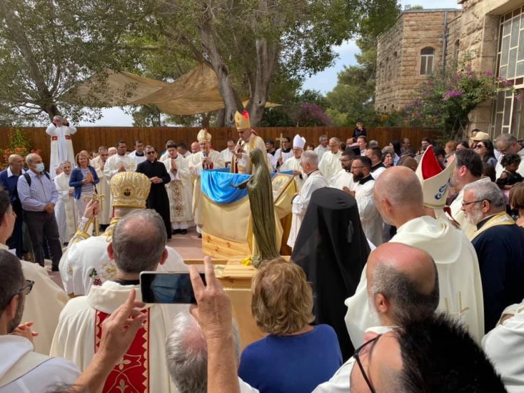نحن اليوم مجتمعون في هذا المزار المقدس في دير رافات، في يوم الاحتفال بعيد سيدتنا مريم العذراء، سيدة فلسطين، لنفتتح رسميًّا مسيرة السينودس في أبرشياتنا الكاثوليكية في الأرض المقدسة، ضمن الإطار الأوسع للسينودس العام للكنيسة الكاثوليكية، الذي افتتحه قداسة البابا فرنسيس في التاسع من هذا الشهر تشرين الأول/ أكتوبر.