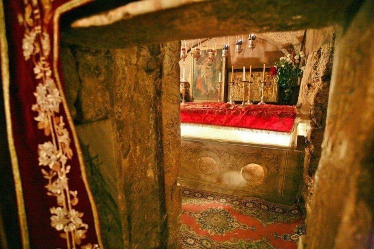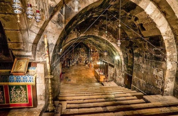 ويفضي الدرج إلى قبر مريم، وفي عيد الصليب تشعل النيران في إشارة إلى تقليد يعود إلى زمن القديسة هيلانة التي بنت 228 كنيسة في الأراضى المقدسة.