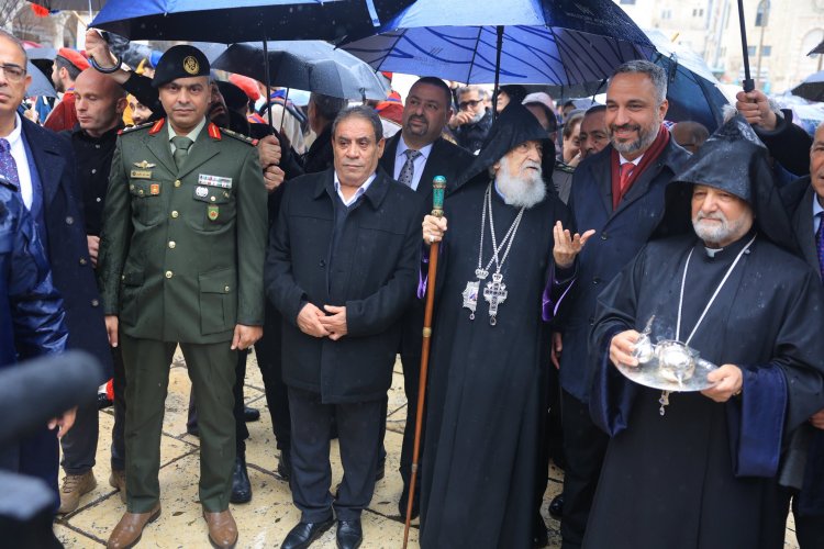 من جهته، هنأ رئيس بلدية بيت لحم، غبطته وأبناء الرعية في بيت لحم والشتات وأرمينيا بمناسبة عيد الميلاد المجيد، متمنياً لهم سنة جديدة ملؤها الخير والبركات، وأكد أن إحياء هذه المناسبة في مدينة الميلاد يجسّد عمق الروابط الروحية والتاريخية التي تجمع أبناء الشعب الواحد، مشددًا على أن بيت لحم ستبقى، رغم كل التحديات، مدينة للأمل، وحاملة لرسالة الميلاد القائمة على المحبة والسلام.