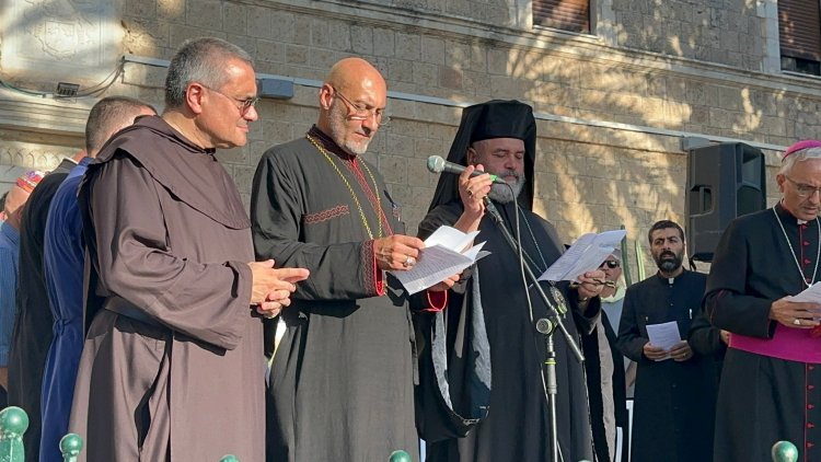 وأمام جمهور حاشد قال المطران متى: "نقف كشعب مسيحي في هذه الديار، وفي هذه الأبرشية تحقيقًا لدعاء السيد المسيح له المجد: "ليكونوا واحدًا كما نحن واحد". عنوان نذكِّر به أنفسنا أولاً، ونرسله إلى جميع مواطني هذه البلاد وخارجها، مؤكّدين أن مقدّساتنا هي تاج العرض والشرف وإكليل الكرامة وهي خط أحمر لا يمكن تجاوزه".