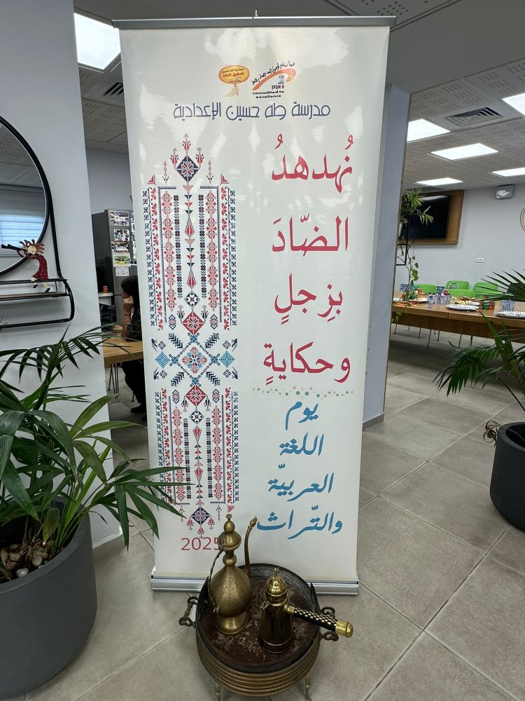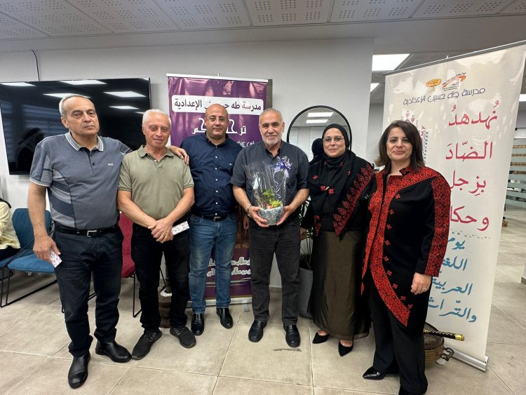 في يومٍ لا يُنسى، تنفّست فيه الضاد عبيرها، وتهادت الكلمات بين قصيدةٍ وحكاية وكلمة، ارتقى فيها المعنى، وازدهرت الهوية، وامتلأت القلوب فخرًا وانتماءً. وفي جوٍّ عابق بالمحبة والفخر والاعتزاز حلّت مجموعة من أعضاء "الاتحاد العام للكتاب الفلسطينيين – الكرمل 48"، من شعراء وكتاب حاملة رسالة الانتماء والعطاء، على مدرسة "طه حسين الاعدادية" في مدينة سخنين الإباء، يوم الثلاثاء 13 أيار 2025، للمشاركة في إحياء يوم اللغة العربية والتراث تحت شعار "نهدهد الضاد بزجلٍ وحكاية". وشاهد أعضاء الاتحاد أثناء دخولهم ساحة المدرسة جانبا من احتفال الطلاب بهذا اليوم المميز، حيث عقدوا حلقات الدبكة الفلسطينية، وجلسوا في الخيمة العربية بما تشمله من عادات وتقاليد رافقتها على مر العصور، وأبدعوا في لوحات فنية حيّة من ابتكارهم وبرشاد طاقم معلمي المدرسة في الكشف عن جماليات اللغة العربية.