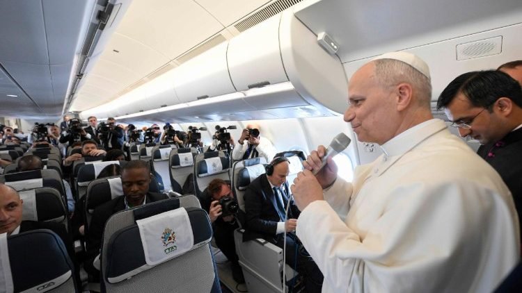 البابا لاوُن الرابع عشر يلتقي الصحفيين خلال العودة إلى روما ويتحدث بصراحة عن مواضيع شائكة وحسّاسة