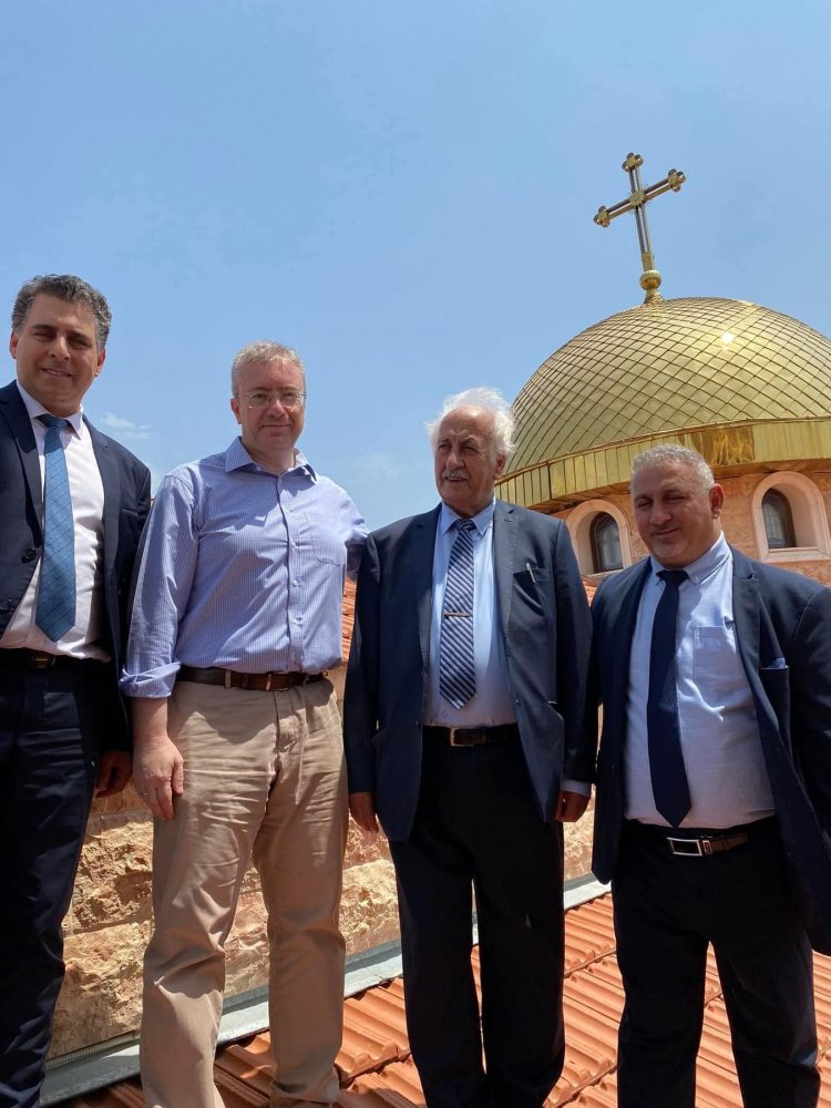 القيامة - قام القنصل العام لدولة اليونان، السيد فليوراس وعقيلته بزيارة كنيسة القديسين قسطنطين وهيلانة الجديدة في قرية كفرسميع، يوم أمس الثلاثاء، للاطلاع عليها بعد إتمام بنائها.