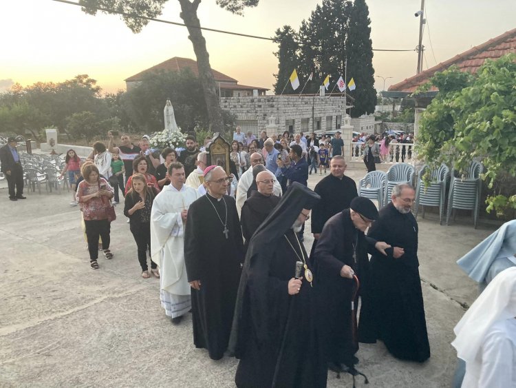 حفل تكريم مهيب للبطريرك ميشيل صباح في ختام الشهر المريمي في كنيسة دير الملاك جبريل في المجيدل