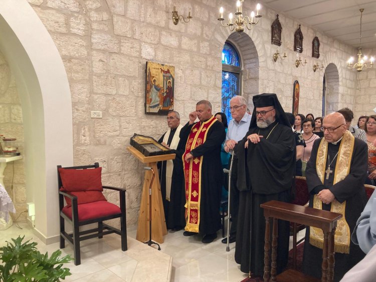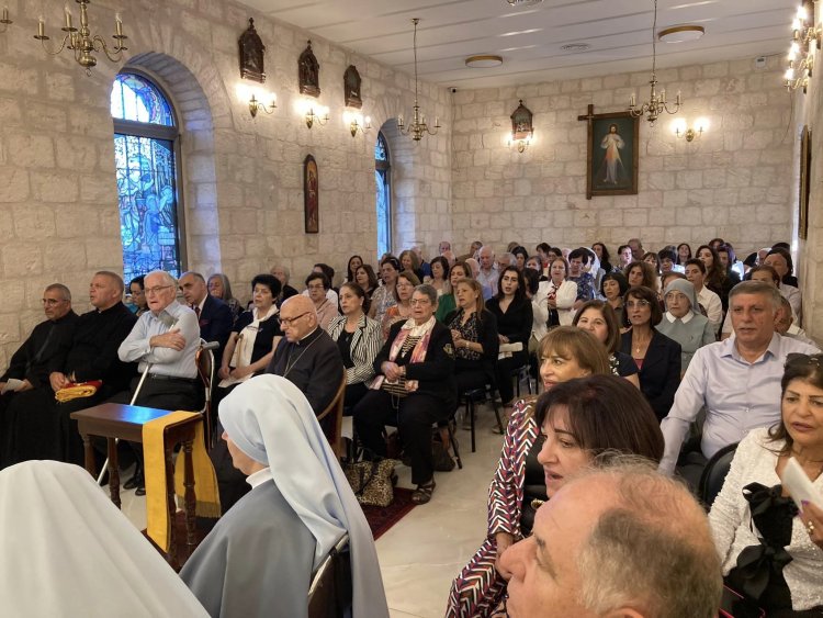 جاء هذا التكريم في خاتمة الشهر المريمي، شهر التكريم والصلوات لوالدة الاله وتكريما لشخصية ما زالت تنبض بروج الحب والمحبة ومشاعر العطاء والانتماء للوطن والكنيسة غبطة البطريرك مشيل صباح. وأقيم بداية قداس الهي ترأسه حارس الأراضي المقدسة، الأب طوني شكري ورافقه الأب فادي شلوفة، كاهن دير الملاك جبريل، وبعد القداس تمت مراسم الدورة بشخص والدة الاله حول الكنيسة رافقتها الصلاة والتراتيل ومشاركة جمهور المؤمنين.