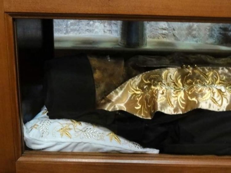 يوجد داخل الحشية الزجاجية بقايا راهب روماني، القديس يوحنا الروماني الخوزيبي الجديد، الذي أقام هنا في كهف صغير لمدة 8 سنوات وتوفي عام 1960 الذي اعلن عنه قديسا في 31/1/2016.