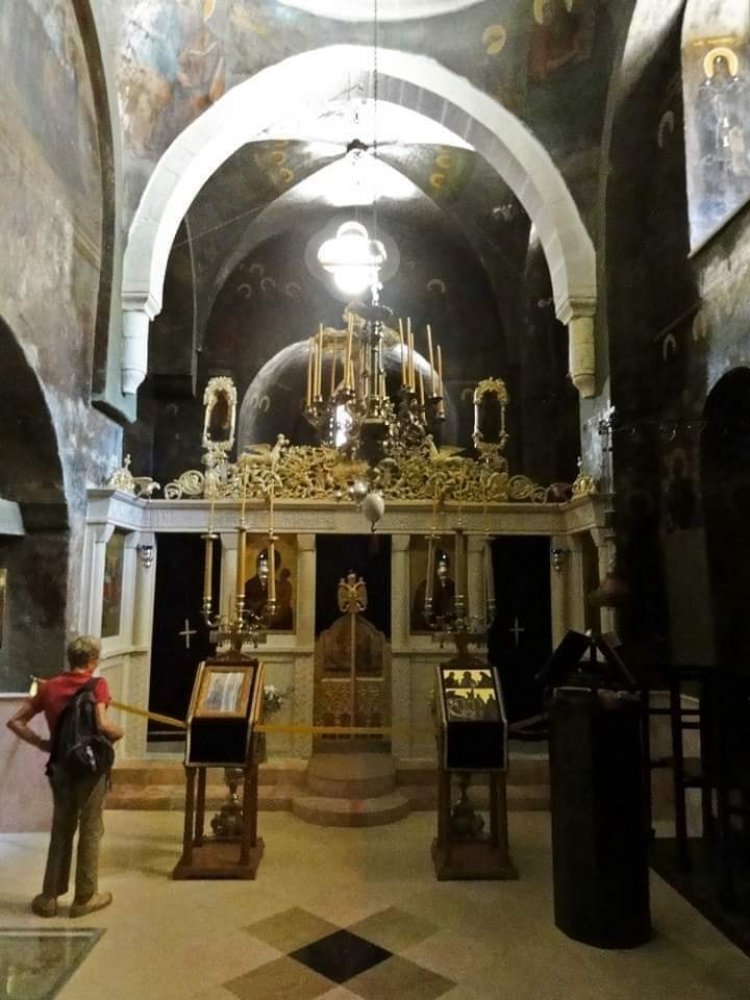 يوجد داخل الصندوق أو وعاء الذخائر، وهو عبارة عن عظام القديس جاورجيوس الخوزيفي، وهو ناسك مشهور سكن هنا في القرن السادس وأطلق على الدير اسمه. توجد في الكنيسة رفات الآباء المؤسسين، وبقايا الرهبان الذين قتلوا هنا في عام 614 م على يد الفرس. على الحائط، من بين لوحات أخرى، يوجد رسم القديس جاورجيوس الخوزيفي .