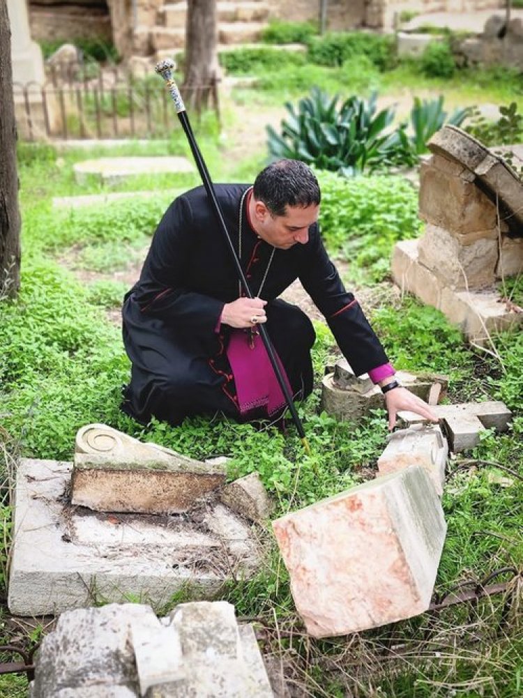 رؤساء الكنائس في القدس يستنكرون الاعتداء على المقبرة البروتستنتية ويطالبون بالكشف عن الفاعلين