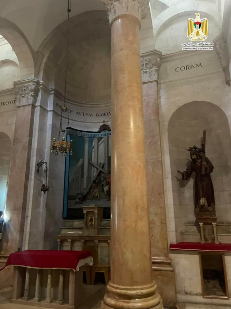 وأدانت "حراسة الأراضي المقدسة"، اعتداء مستوطن على كنيسة حبس المسيح (كنيسة الجلد) التابعة للحراسة، وتحطيم محتوياتها. وقالت، في بيان صدر عنها: "إنّها الحادثة الخامسة التي تقع في الأسابيع الأخيرة. في الأسبوع الماضي فقط، تعرّض عدد من السياح لهجوم من قبل مجموعة من المستوطنين الذين دخلوا الباب الجديد. كما ارتكبوا أعمال تخريب عند الباب الجديد، بالقرب من مقرّ حراسة الأراضي المقدسة، وألقوا الكراسي والطاولات والكاسات وحولوا الحي المسيحي إلى ساحة معركة".
