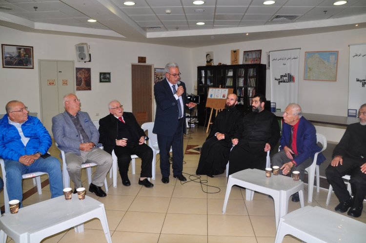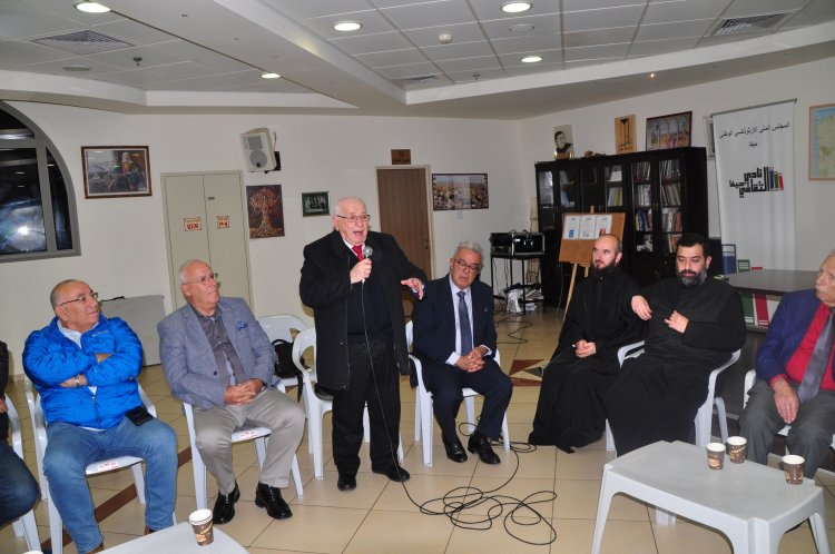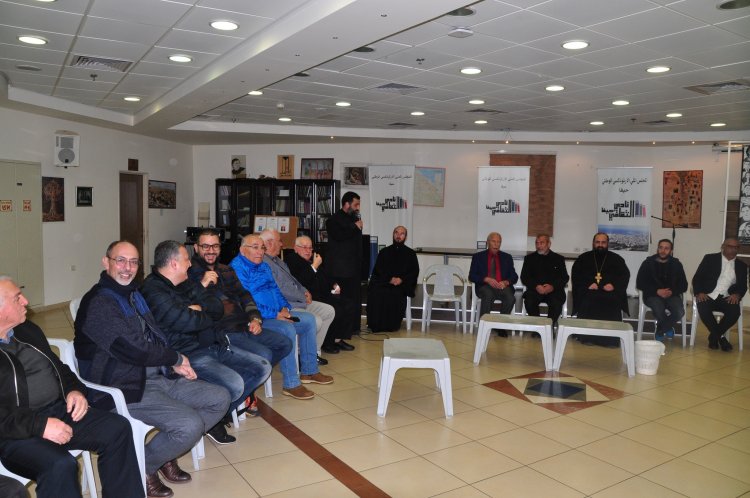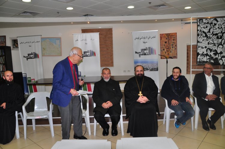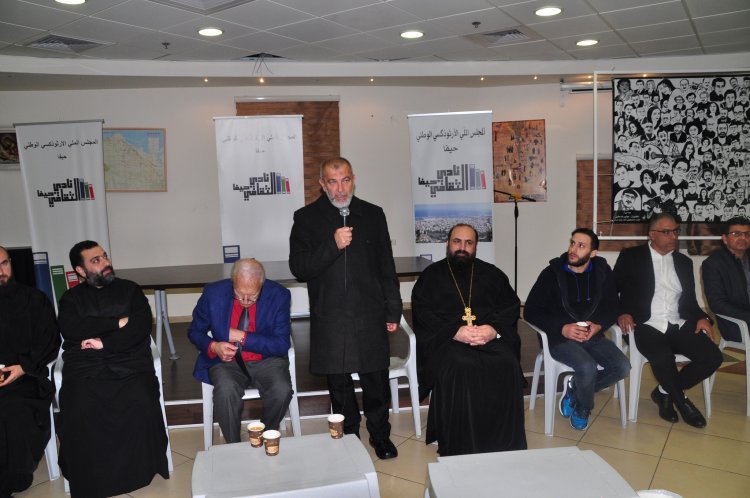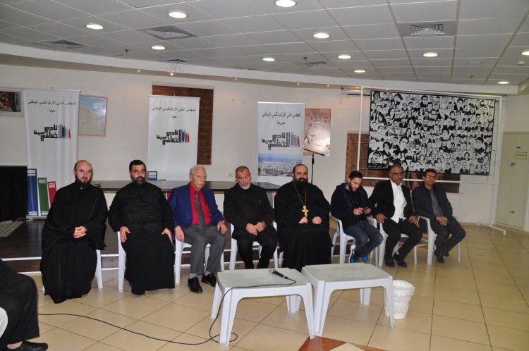 وكان في استقبال الوفد كل من يوسف خوري، رئيس المجلس الملي الأرثوذكسي الوطني في حيفا والأرشمندريت أرتيميوس، الرئيس الروحي للرعية الأرثوذكسية والكهنة الإيكونوموس ديمتريوس والأب ميخائيل والمحامي فؤاد نقارة، رئيس الهيئة التمثيلية للطائفة الأرثوذكسية وبحضور كل أعضاء المجلس الملي الأرثوذكسي الوطني والهيئة التمثيلية للرعية الأرثوذكسية.