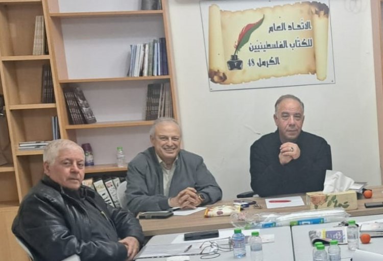 الكاتب محمد بكرية والناقد رياض مخول ويتوسطهما الكاتب زياد شليوط في ندوة لمناقشة الرواية